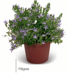 Колокольчик гарганский (Campanula garganica) Filligree сочетает в себе множество мелких светло-голубых цветков звездчатой формы с компактным цветением и высокой однородностью. Филлигри подходит для горшков высотой 11-14 см и хорошо смотрится в смешанных летних посадках.