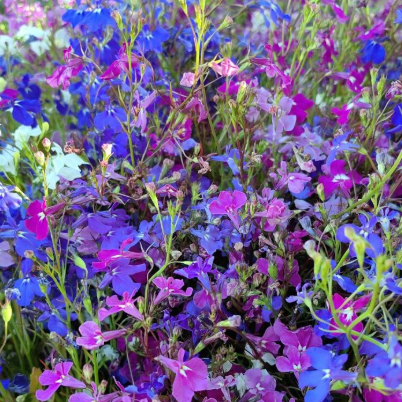 Ампельная лобелия создает каскад из изящных побегов до 25 см длиной. Кустик компактный, около 25-30 см в ширину, весь покрыт множеством мелких цветков диаметром 1-2 см. Растение идеально подходит для подвесных корзин, контейнеров и вазонов. Цветет обильно и долго.